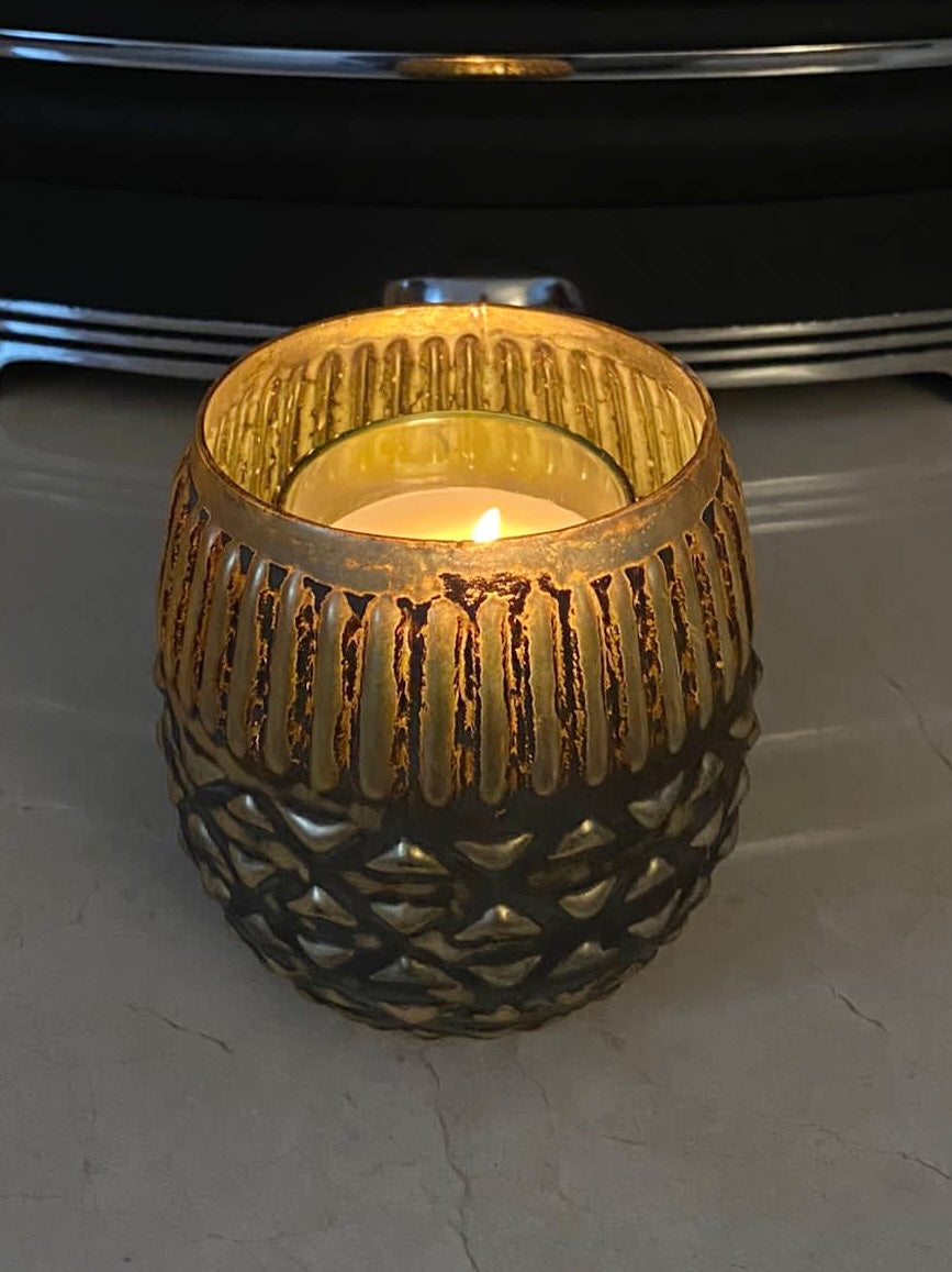 Large Decorated Glass Holder for Votive Candles HANDMADE NATURALS Very well made.