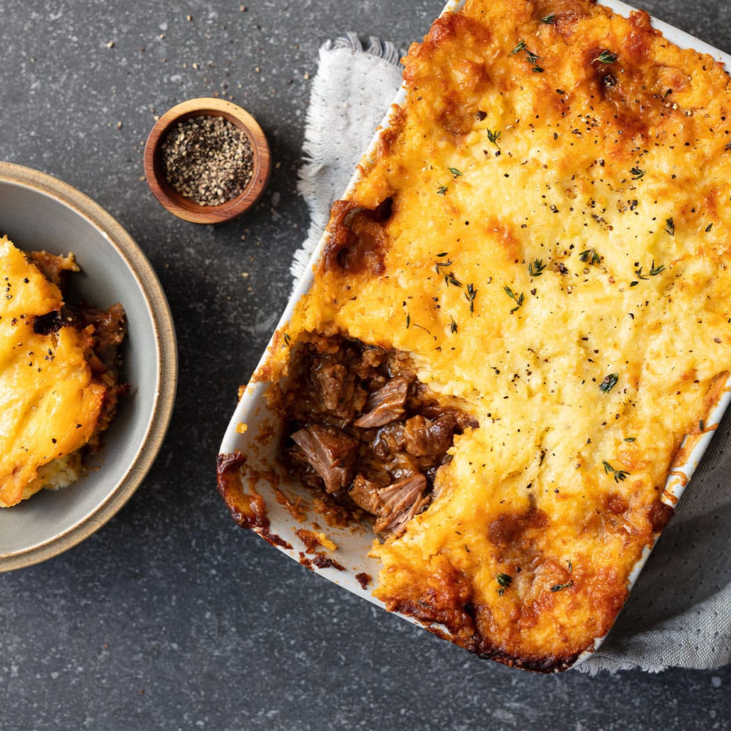 Slow cooked beef pie with Cheddar mash recipe easyFood Very well made.