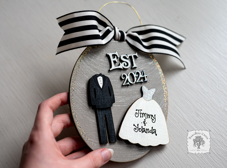 Bride and Groom Wedding Ornament Est 2024 or Est 2025 Personalized 1 SaraBoo Creek Very well made.