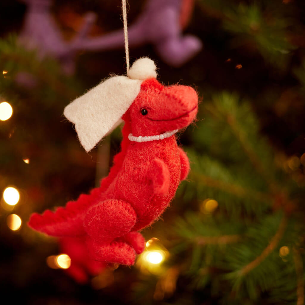 Hand Felted Coral T Rex Bride Dinosaur Ornament Craftspring Very well made.