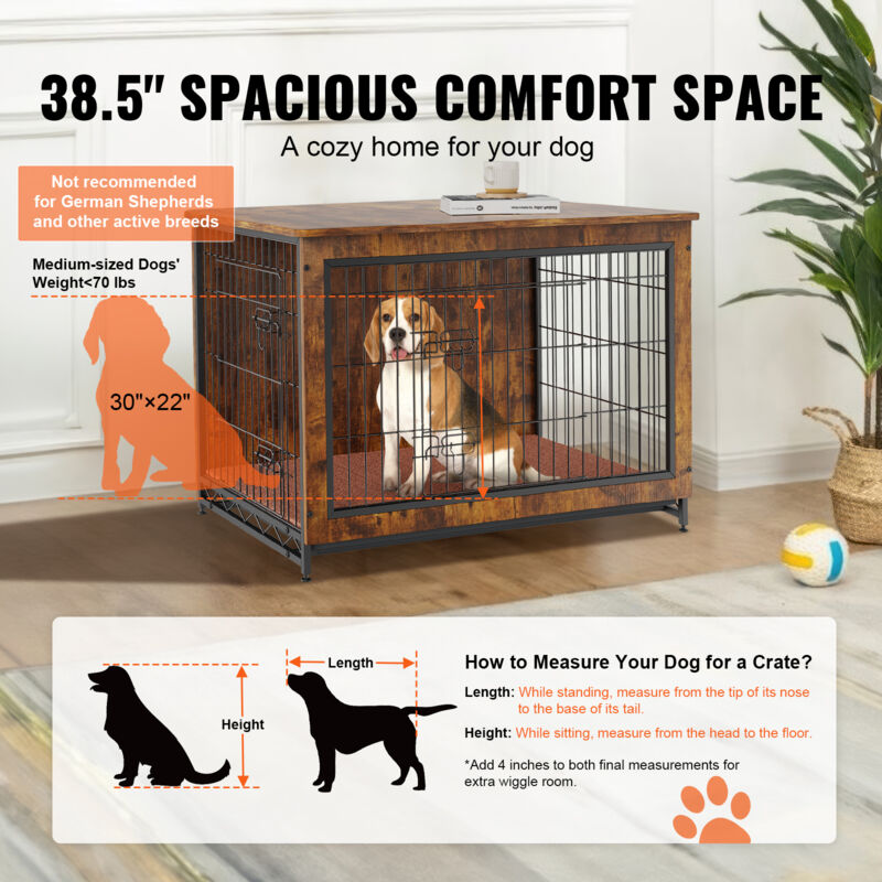 Mophorn 38 inch Wooden Dog Crate Double Doors Heavy Duty End Table with Removable Tray Modern Indoor Kennel for Dogs up to 70 lb Rustic Brown Very well made.