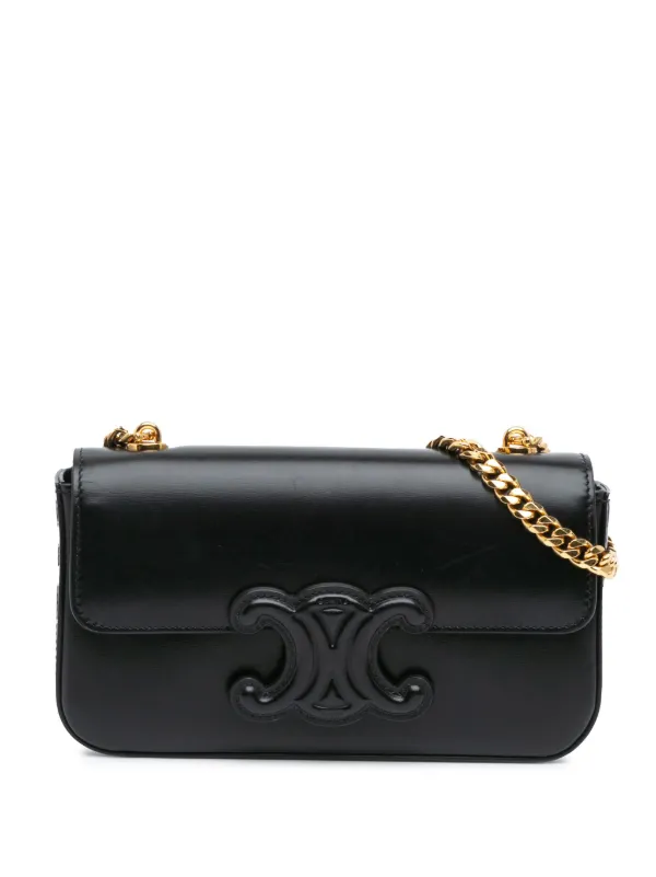 Celine Pre Owned 2017 Shiny Calfskin Triomphe Claude Chain Shoulder Bag Black FARFETCH AZ Very well made.