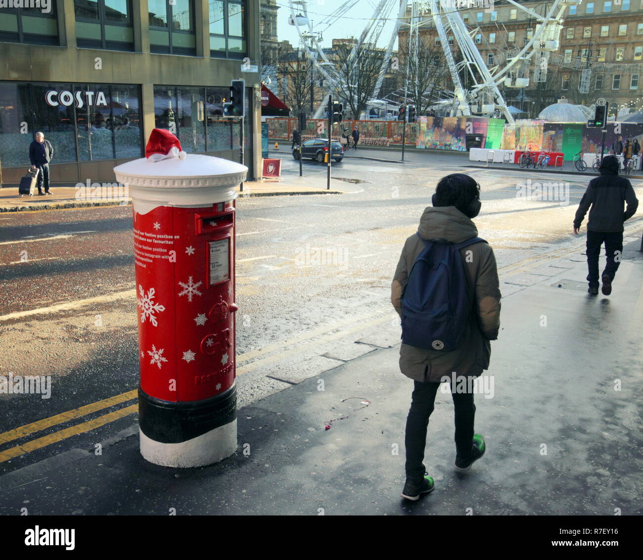 Glasgow Scotland UK 9th December. Santa Dash Sunday saw the start and finish in the centre of the city in George square as the post office have a musical post box that Very well made.