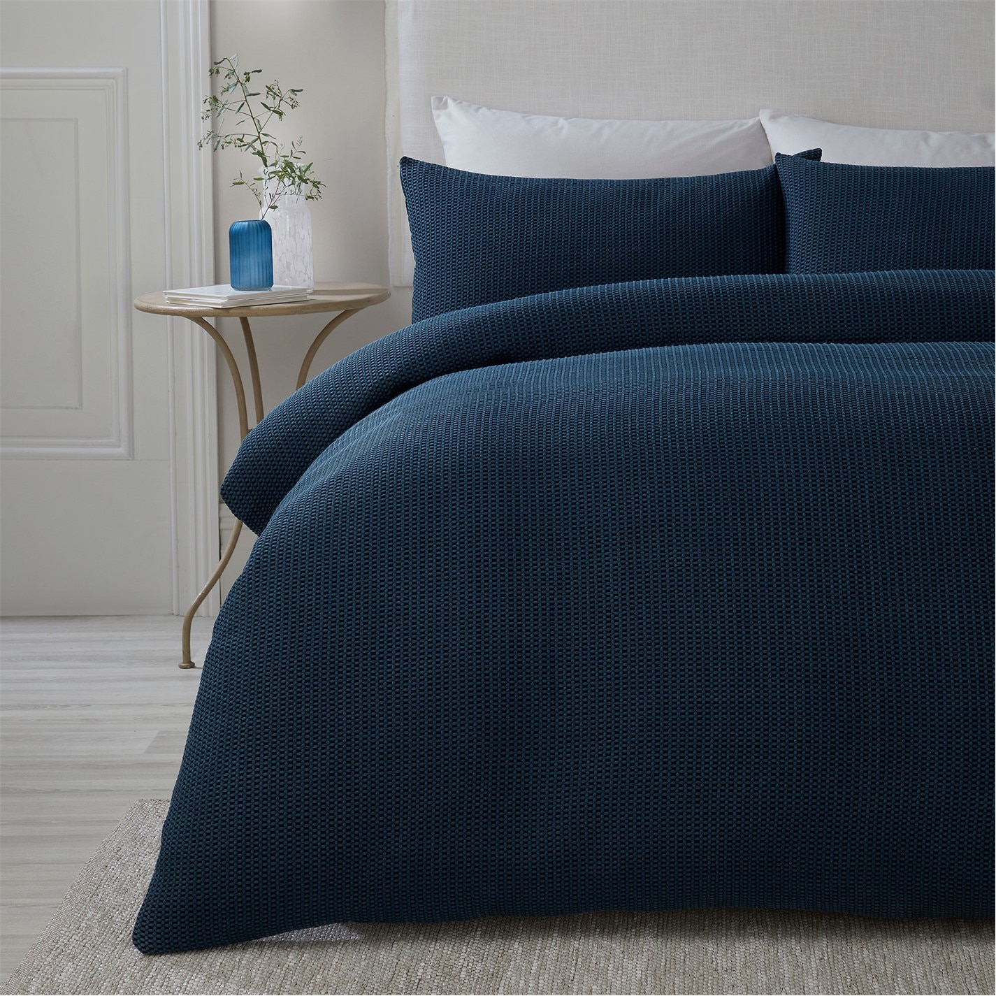 Serene Home Lindly Waffle Weave Duvet Cover Set in Navy Very well made.