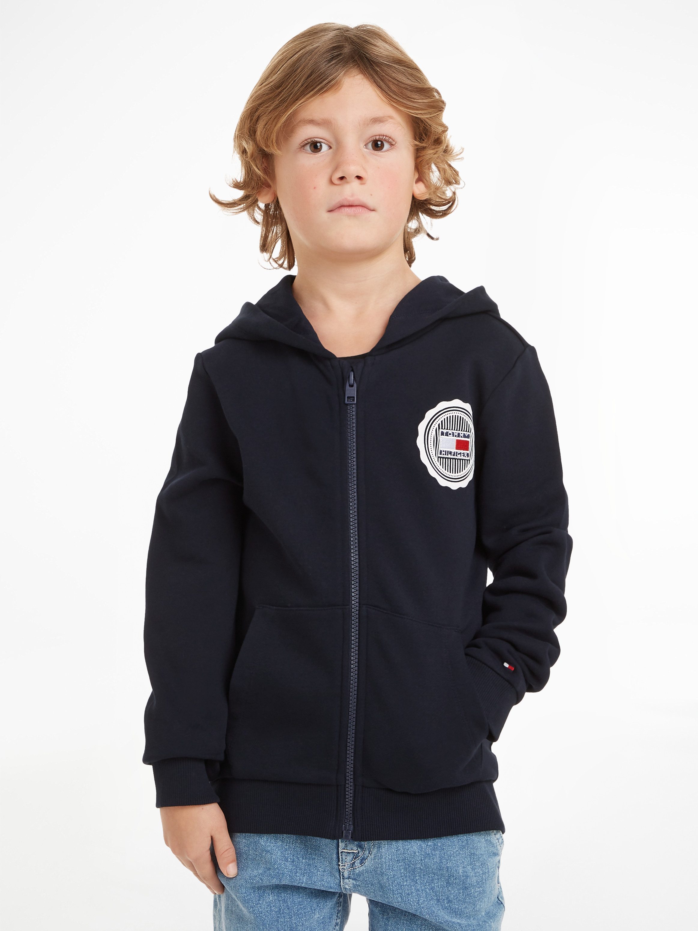 Tommy Hilfiger Sweatjacke STAMP TOWELLING REG ZIPUP HOODIE Kinder bis 16 Jahre mit Logopatch Very well made.
