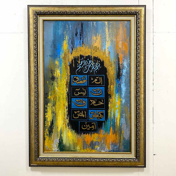 Handmade Loh e Qurani Calligraphy Oil Painting on Canvas Framer Very well made.