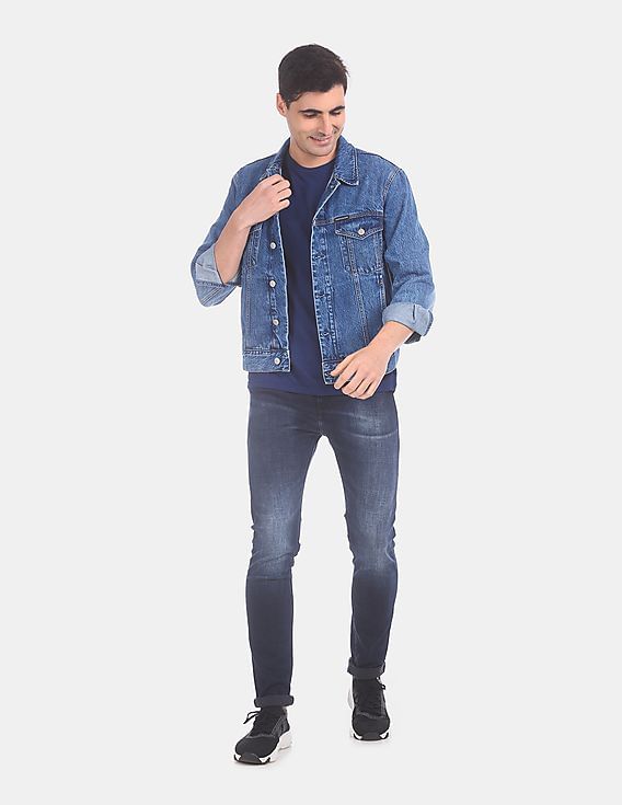 Buy Calvin Klein Men Blue Rear Print Faded Modern Classic Trucker Jacket NNNOW Very well made.