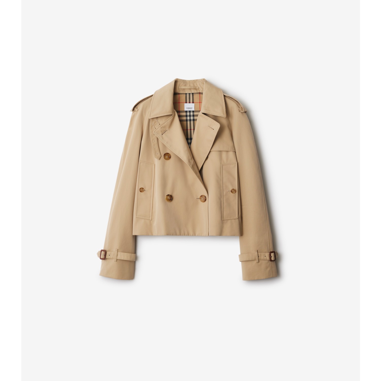 Cropped Gabardine Trench Jacket in Honey Women Cotton Burberry Official Very well made.