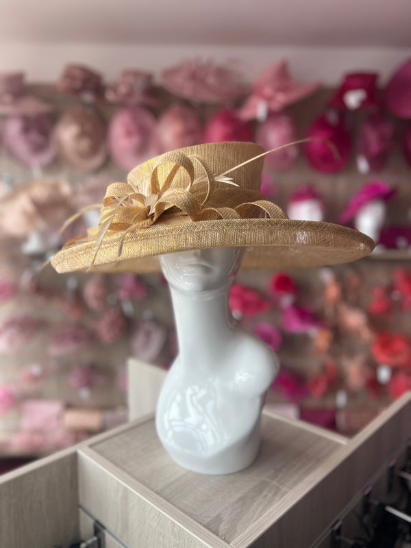 Classic Sinamay Metallic Gold Wedding Hat for Weddings Occasions Very well made.