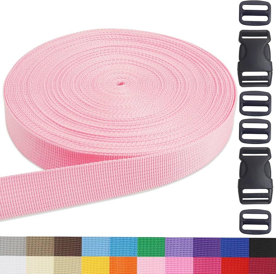 Pink Webbing Straps 1 Inch Durable Polypropylene Straps with Buckles 20 Yards Strapping for Tie Downs Camping Climbing Outdoor Indoor Crafting Very well made.