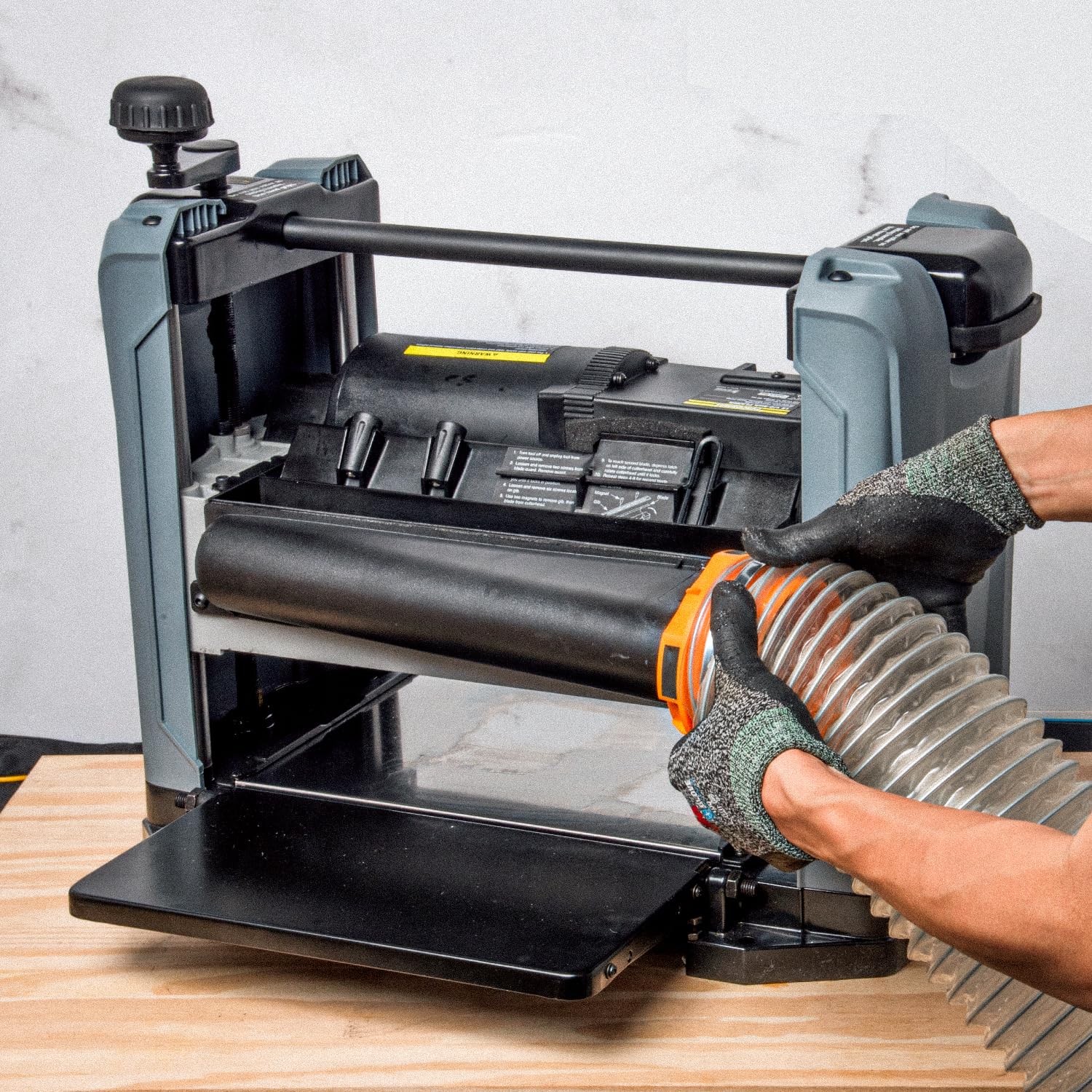 POWERTEC PL1252D 12 1 2 in. 15 Amp Portable Benchtop Thickness Planer with Dust Port Quick Connect Port Hose Adapter and 4 x 10 PVC Dust Collection Very well made.