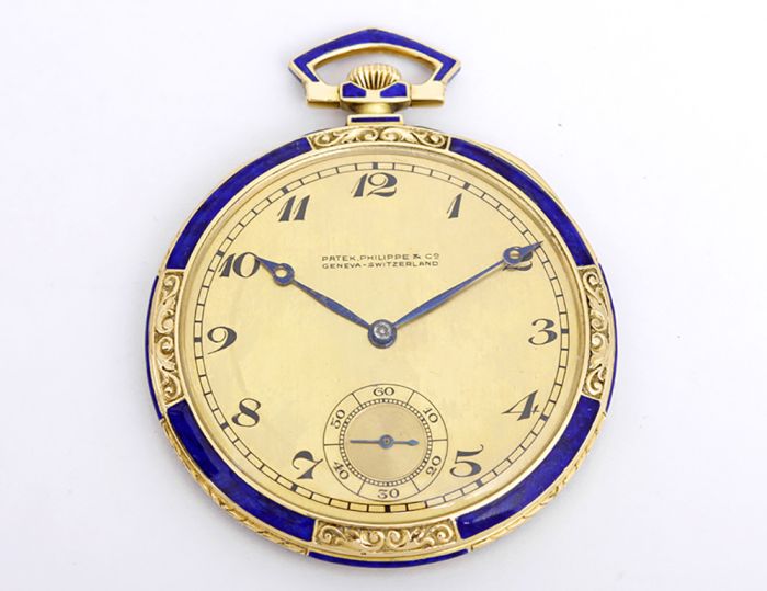Rare Vintage Patek Philippe 18k Yellow Gold Lapis Pocket Watch Very well made.