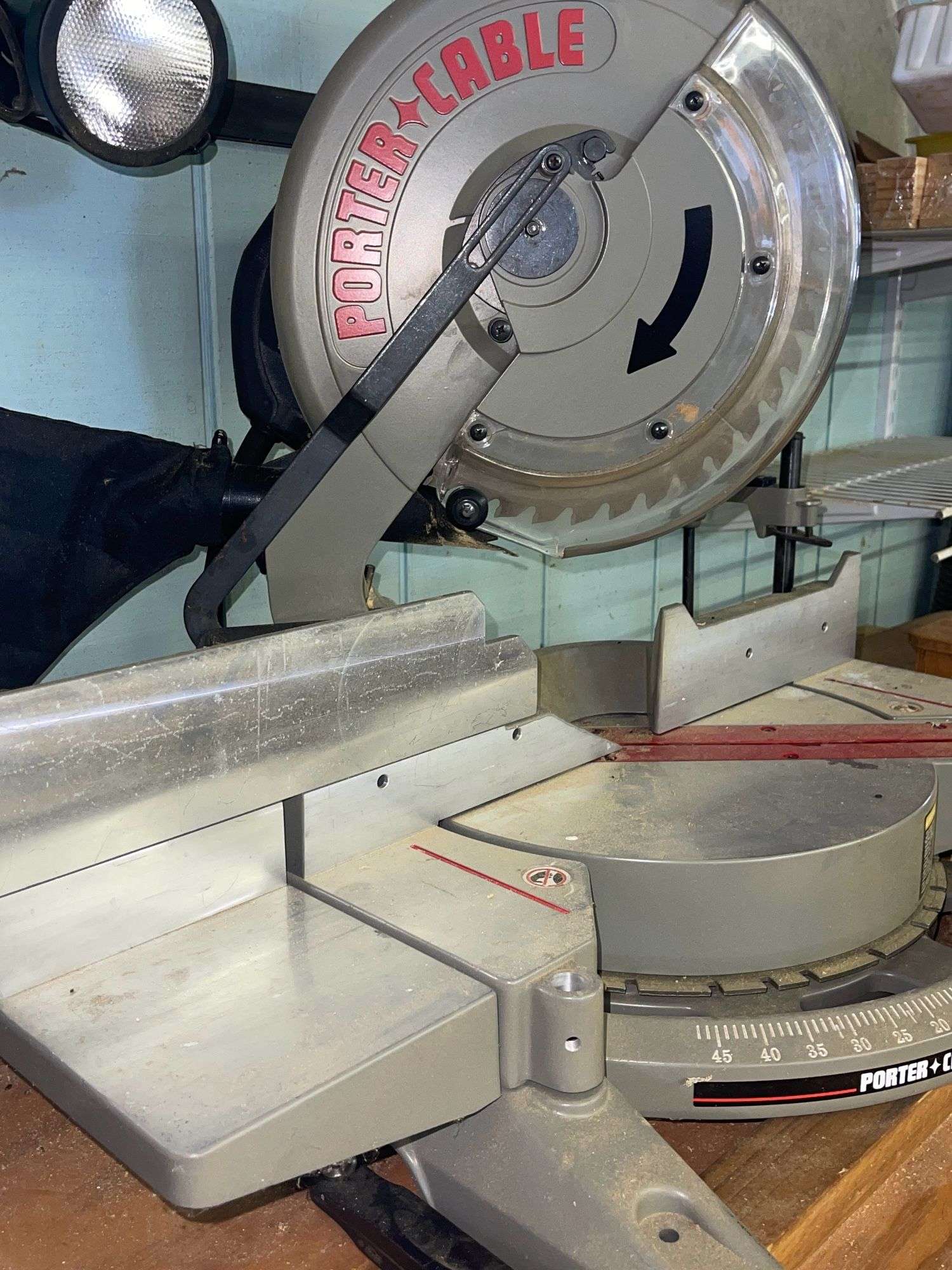 Porter Cable 12 Compound Miter Saw Model 3802 has power 7 x2 Hand Built Out Feed Stabilizer Wo Sherwood Auctions Very well made.