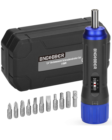 BINGCOBBER 1 4 Drive Torque Wrench Screwdriver Set 1 6NM 12 Pieces Torque Screwdriver Wrench Bits Set Amazon DIY Tools Very well made.