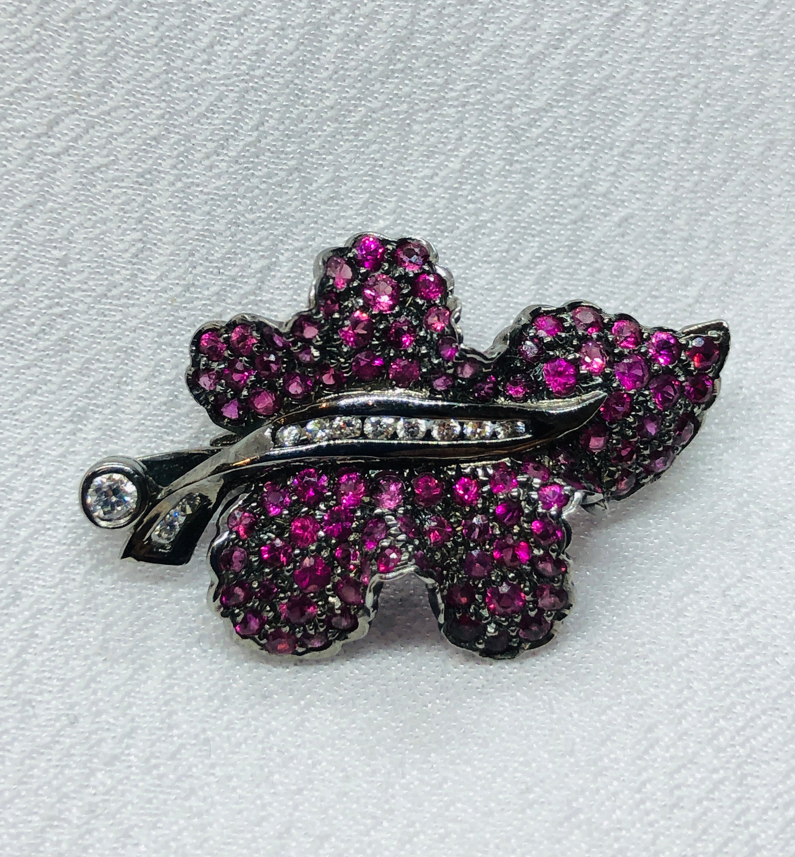 18K Black Gold Leafy Diamond Ruby Brooch DO07 0065 Po Tsui Jade Jewellery Very well made.