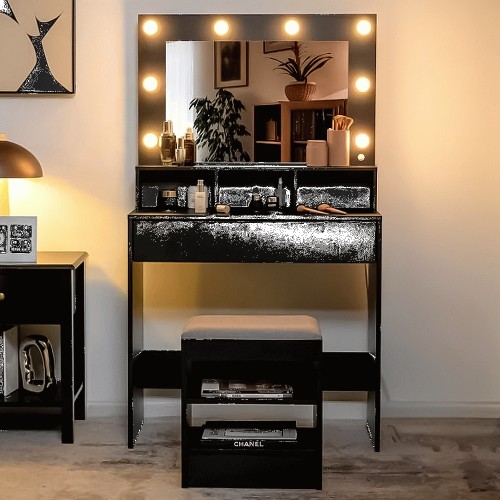 Costway Single Drawer 3 Shelf Black Dressing Table Set with LED Mirror Compare Prices Where To Buy Trolley Very well made.