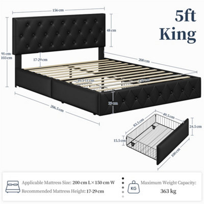 Yaheetech Black 5ft King Faux Leather Upholstered Bed Frame with Adjustable Headboard and 2 Drawers Storage Very well made.
