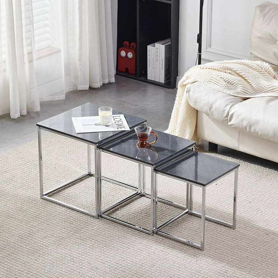 Side Tables Set of 3 Set of 3 High Gloss Coffee Table Made of MDF and Chrome Plated Metal Frame 3 Square Coffee Tables for Living Room Grey Amazon Home Kitchen Very well made.