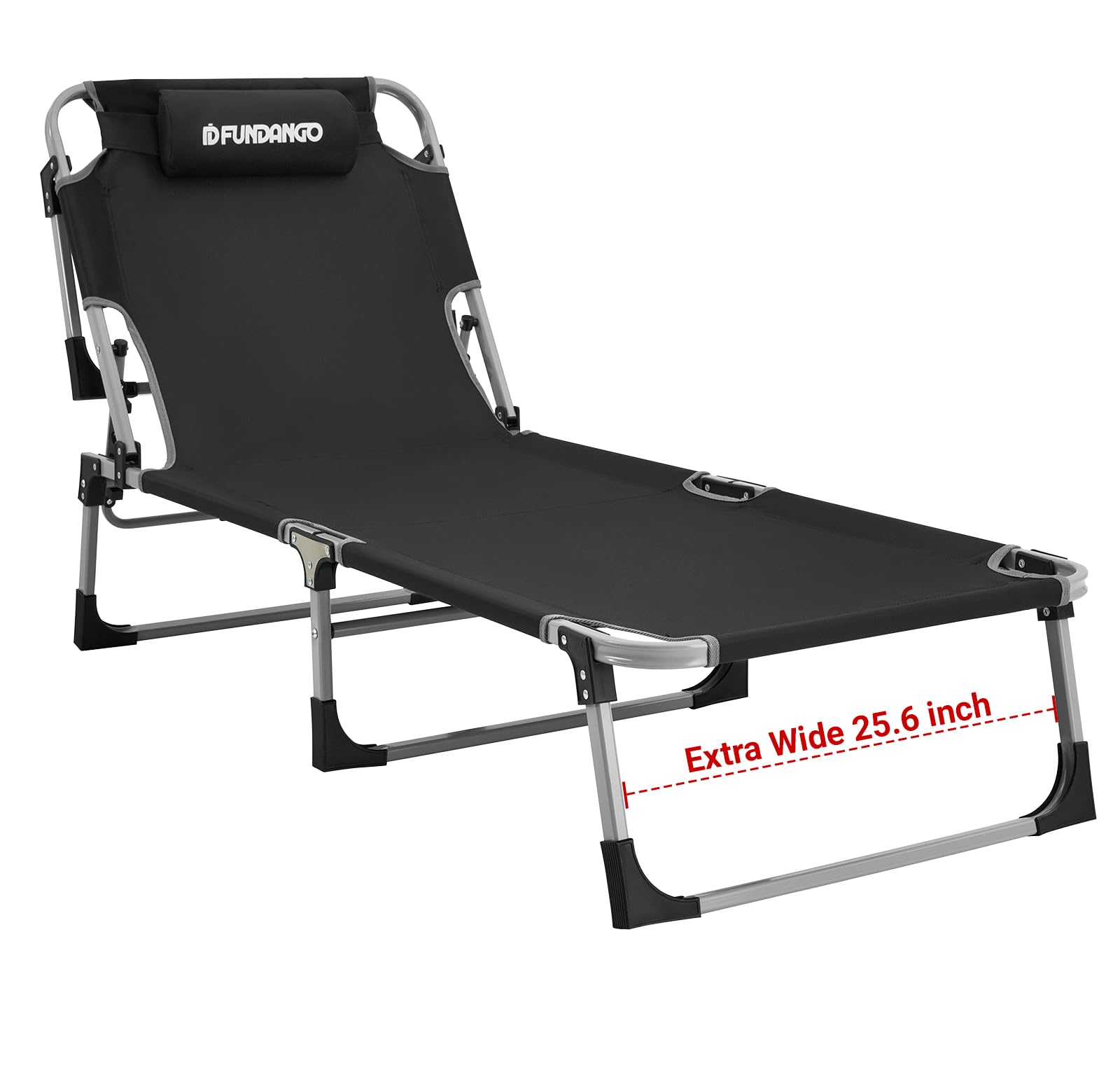FUNDANGO Folding Chaise Lounge Chair with Pillow Widen 4 Fold Portable Lightweight Adjustable Camping Reclining Chair Black for Outdoor Lawn Very well made.