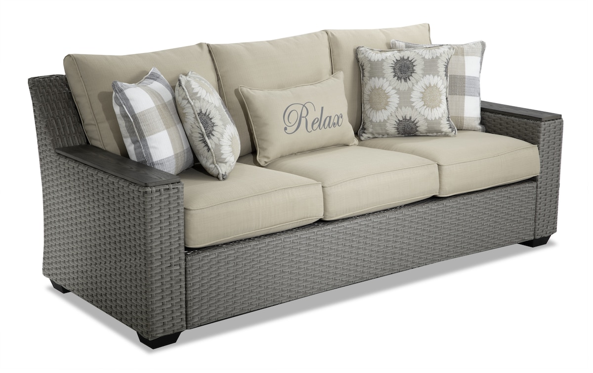 Cottage Chic Beige Wicker Outdoor Sofa Bob s Discount Furniture Mattress Store Very well made.