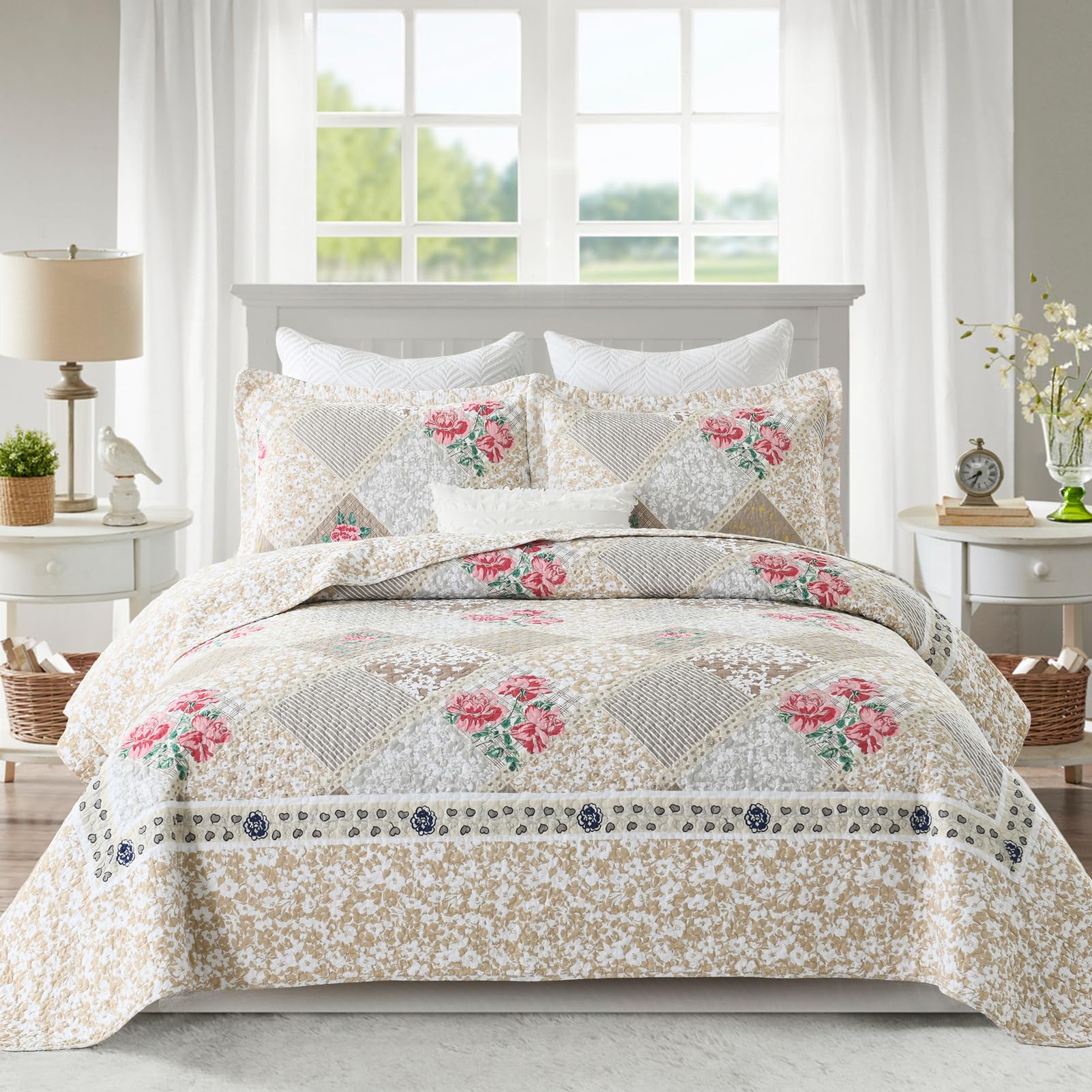 Amazon SahSahCasa 100 Cotton 120 x102 Oversized Queen Bedspread Coverlet Quilt Set Queen Quilted Bedspread Extra Large Quilt Floral XL Bed Spread Lightweight Comforter 3pc Brown Grey Home Kitchen Very well made.