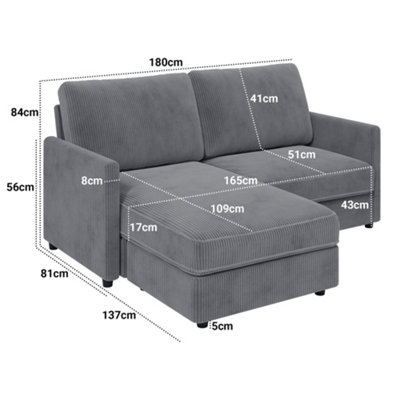 L Shaped Convertible Sectional Sofa 2 Seater with Corduroy Fabric 180cm Grey Very well made.