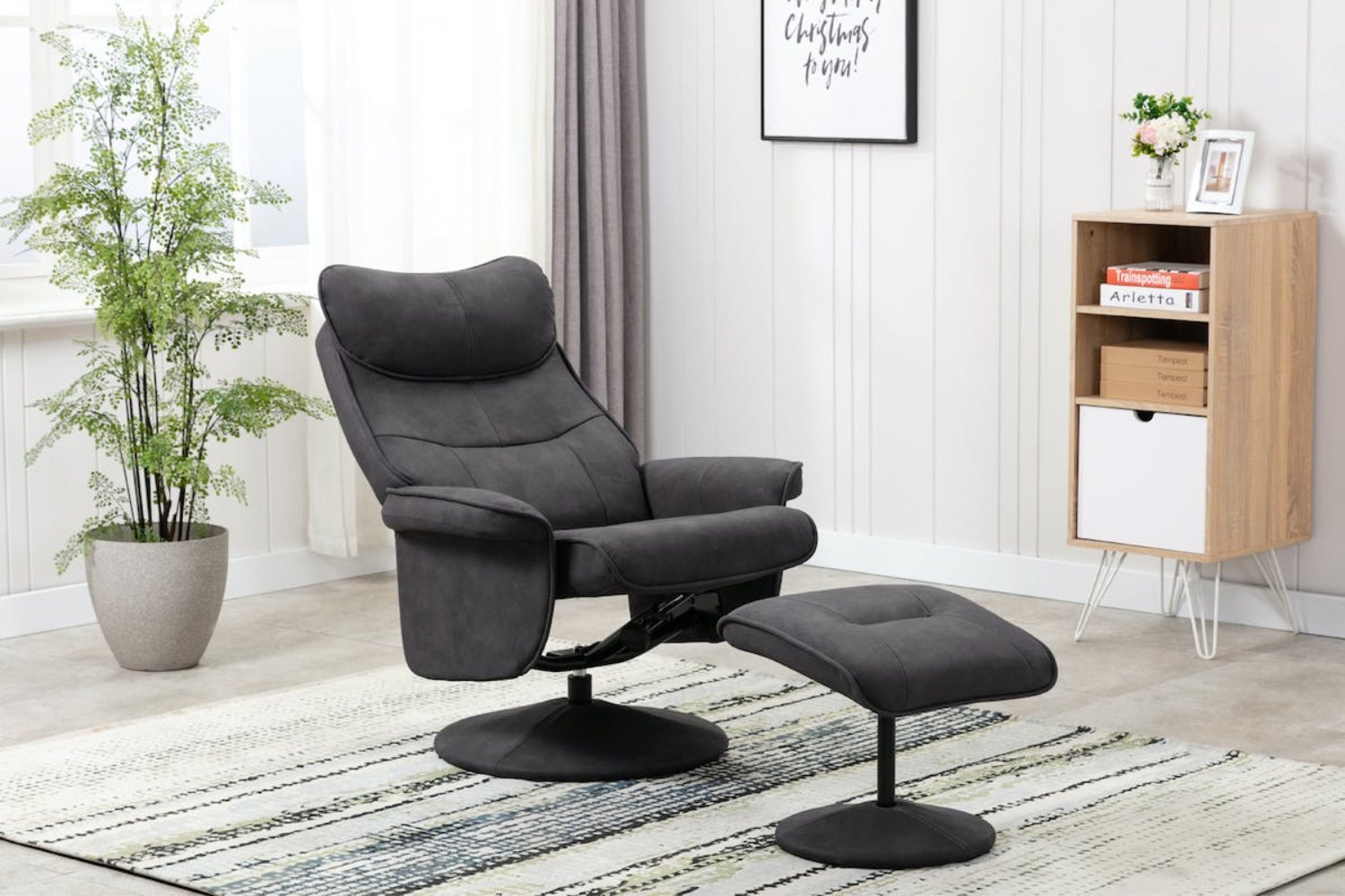 Levi Recliner with Footstool Manual Recliner Fabric Grey Very well made.