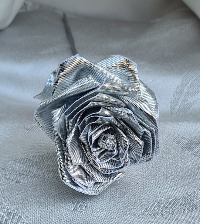 Gorgeous Handmade Silver Lame Ribbon Rose Lon. Folksy Very well made.
