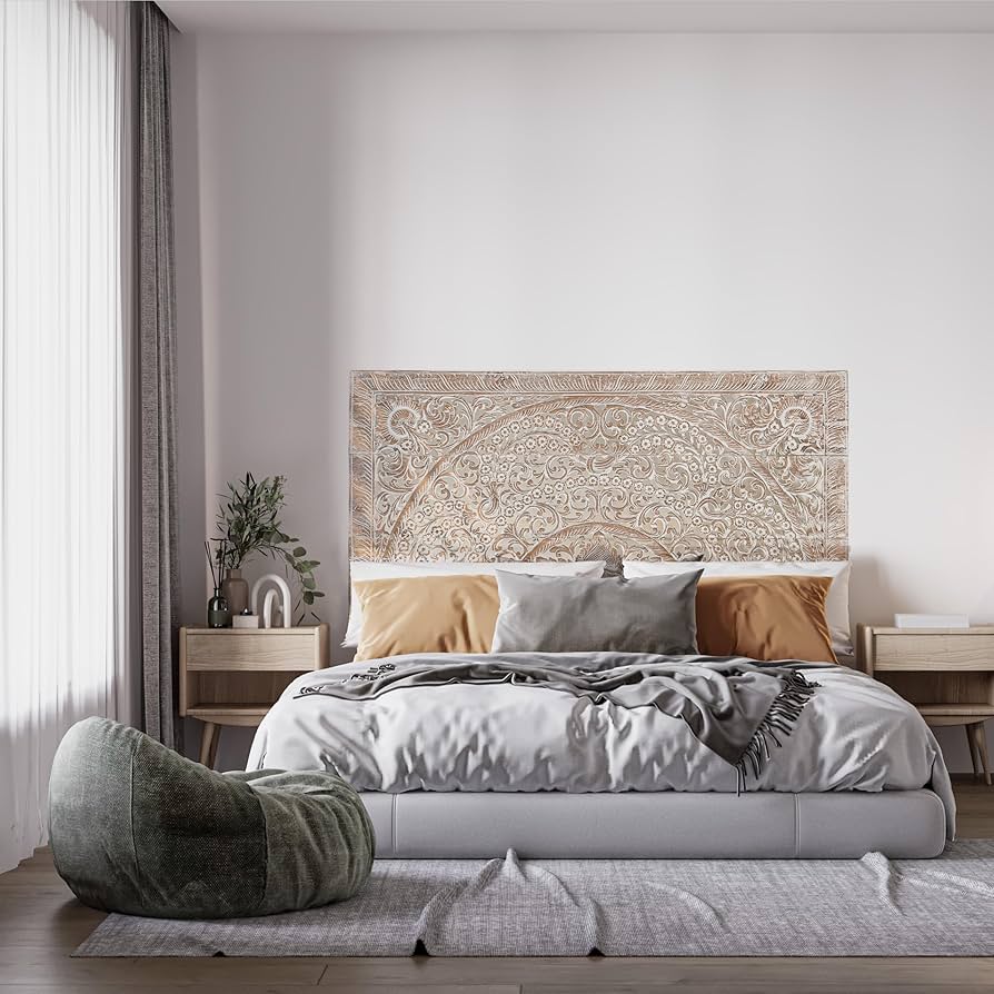 Amazon California King Low Profiled Headboard Rectangle Wall Mounted Bed Head Hand Carved Reclaim Teak Wood Panels Whitewash 72 inches Home Kitchen Very well made.