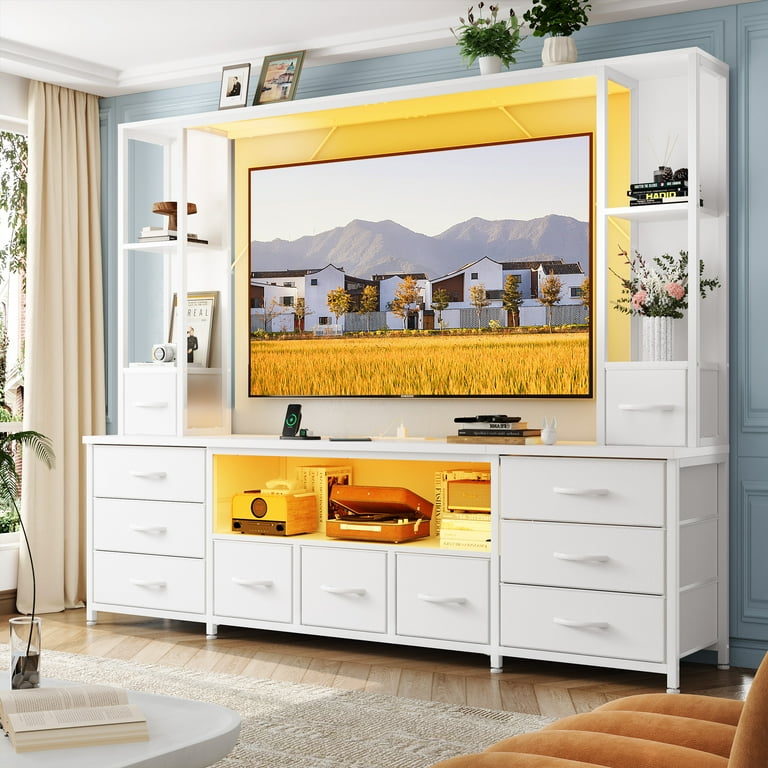 EnHomee 65 TV Stands for Living Room Wall Unit Entertainment Center with 11 Fabric Drawer TV Stand with LED Lights Power Outlets White Very well made.