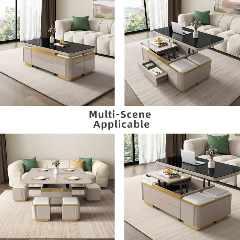Guyii Lift Top Coffee Table Modern Mobile Coffee Table with 4 Storage Stools 3 in 1 Multifunctional Center Table for Living Room Apartment Gray Walmart Very well made.