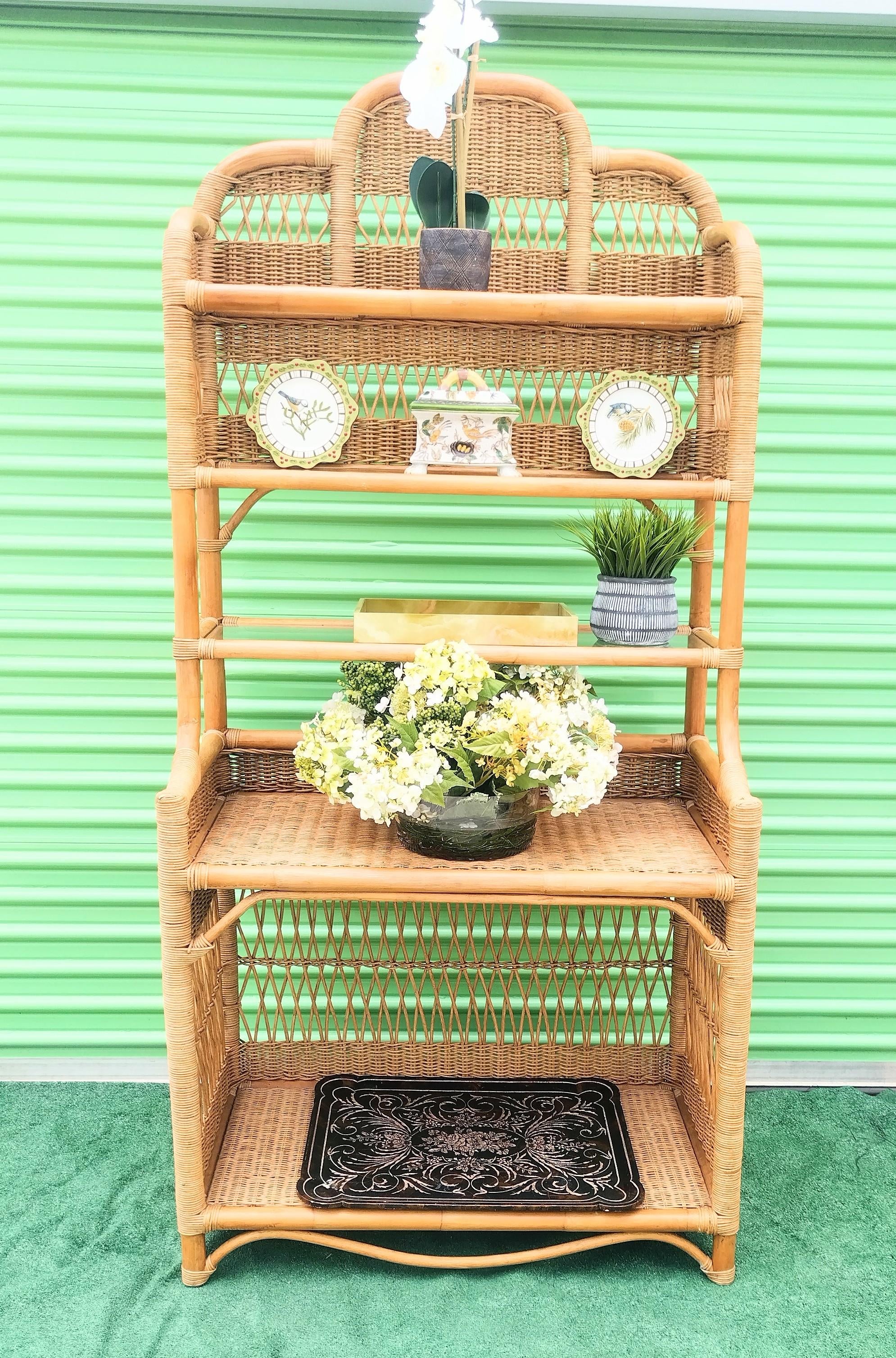 Vintage 4 Tier Arched Wicker Rattan Shelf Very well made.