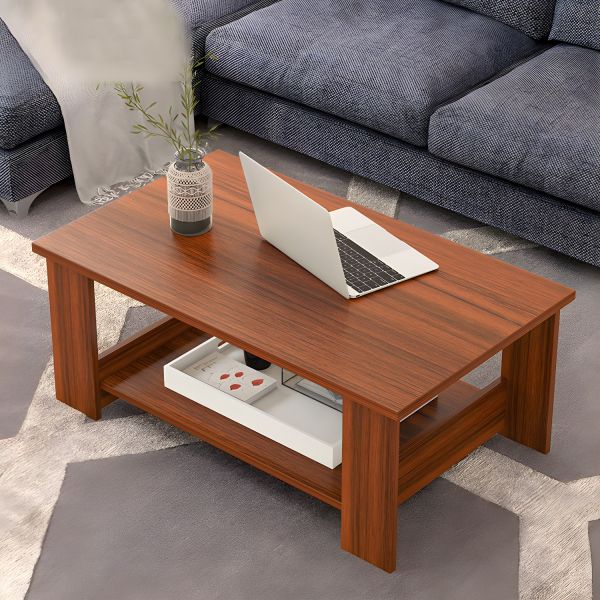 Stylish Rectangular Wood Coffee Table Modern Four Leg Base Drawers Not Included Brown Shelves Included 31.5 L x 16 W x 16.5 H Very well made.