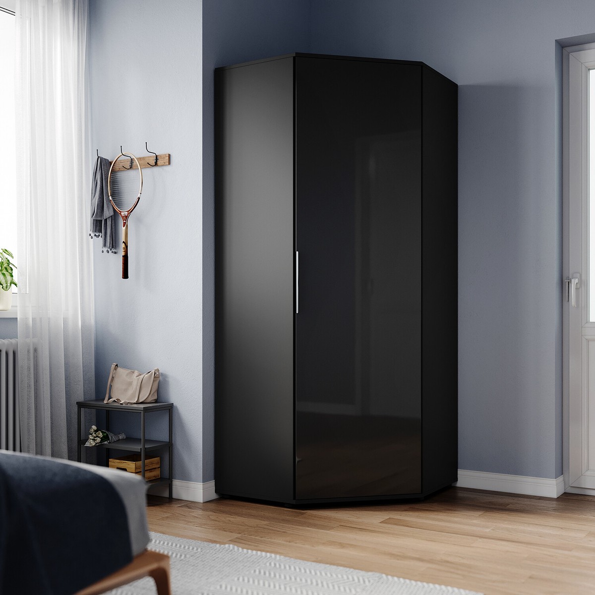 Modern Black High Gloss Matt Corner Wardrobe Bedroom with Hanging Rail Shelves eBay Very well made.