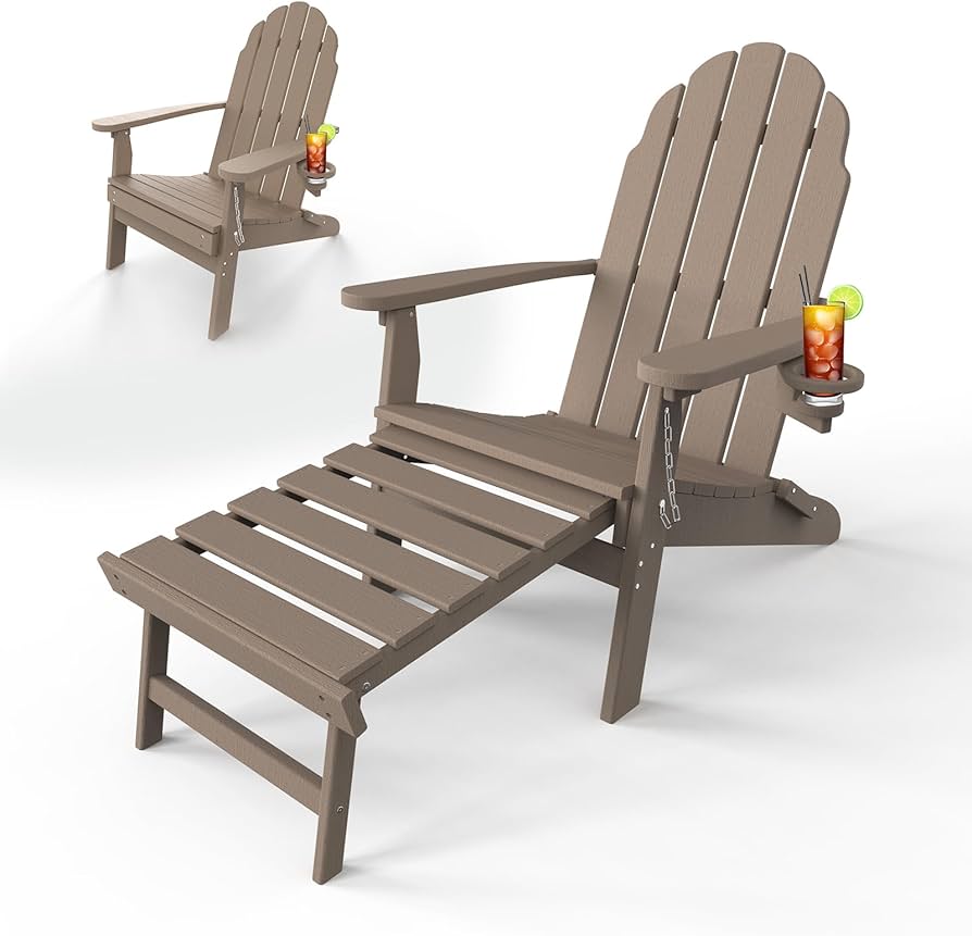 Amazon Adirondack Chair with Ottoman Folding Adirondack Chair with Cup Holder Weather Resistant HDPE Pre Assembled Outdoor Chairs for Porch Pool Deck Backyard Garden Weathered Wood Patio Lawn Gard... Very well made.
