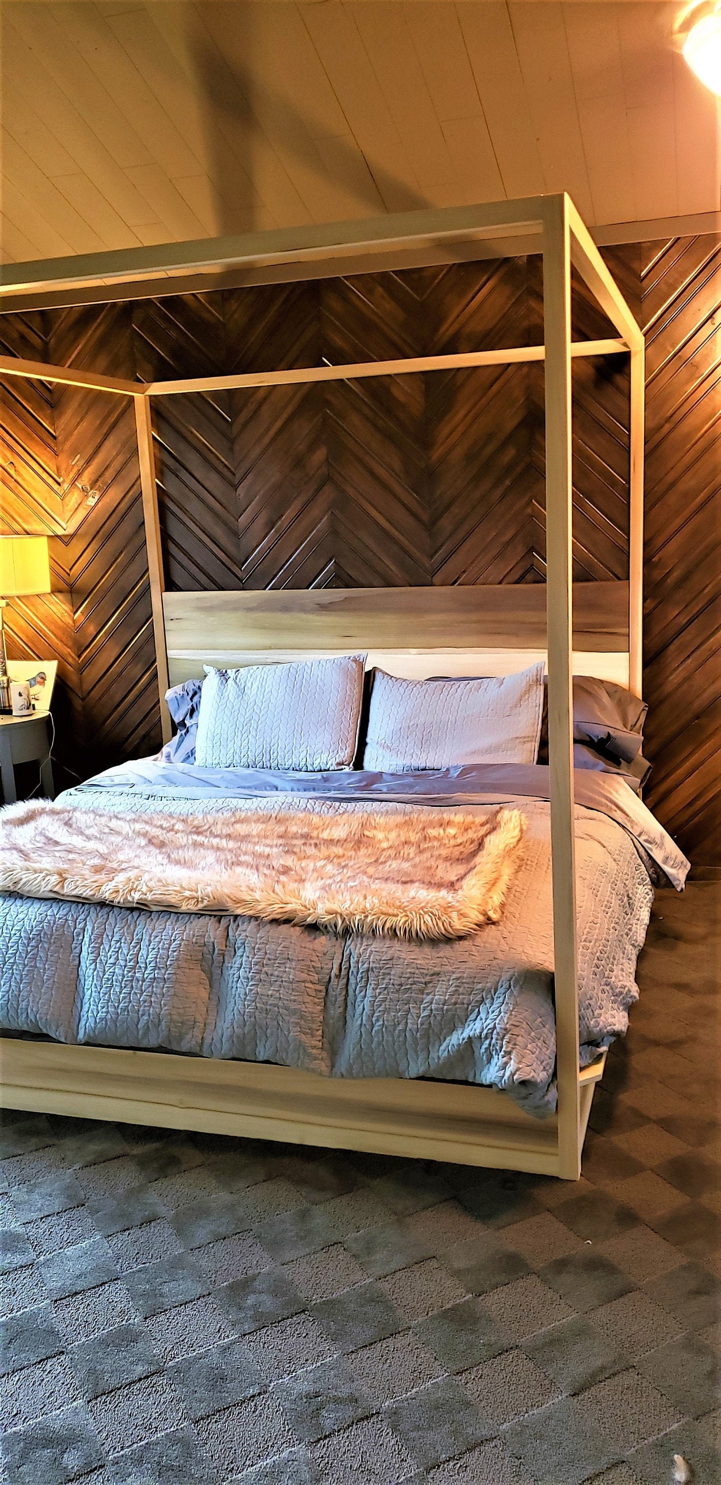 YTTERVAG four poster bed frame gray brown wood King IKEA Very well made.