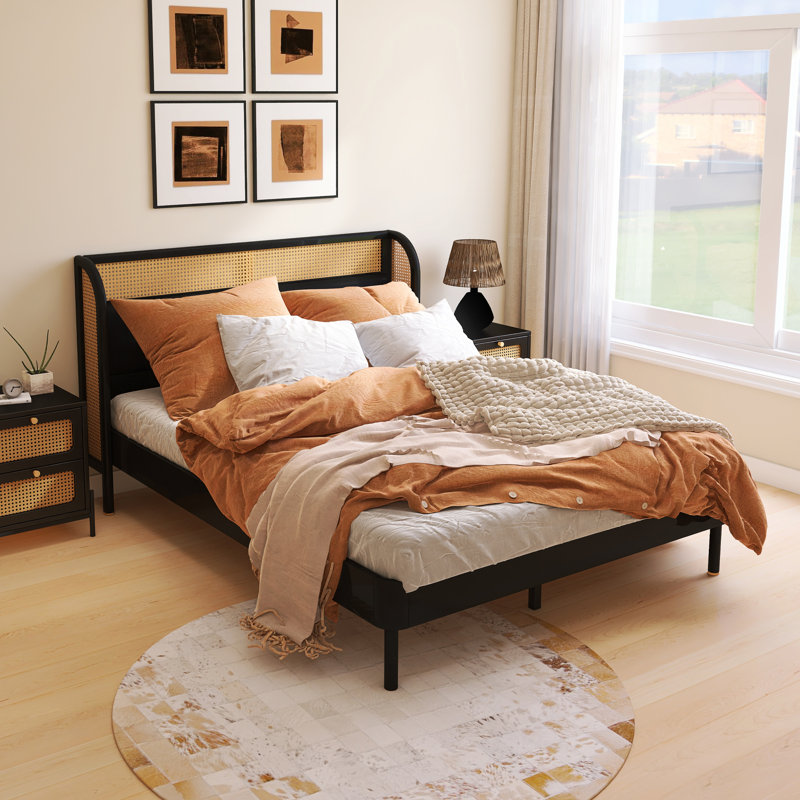 Modern Design Cannage Rattan Wood Platform Queen Bed Bayou Breeze Color Black Very well made.