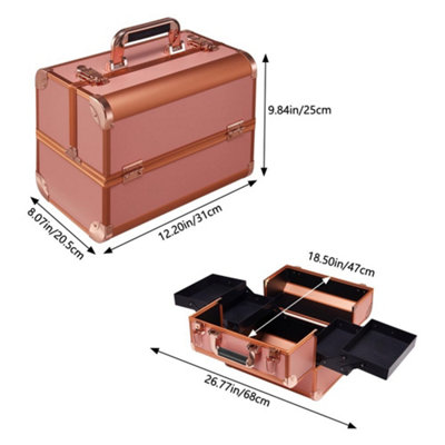 Rose Gold Cosmetic Box 4 Trays with Compartments Professional Makeup Box Storage Organizer Case Very well made.
