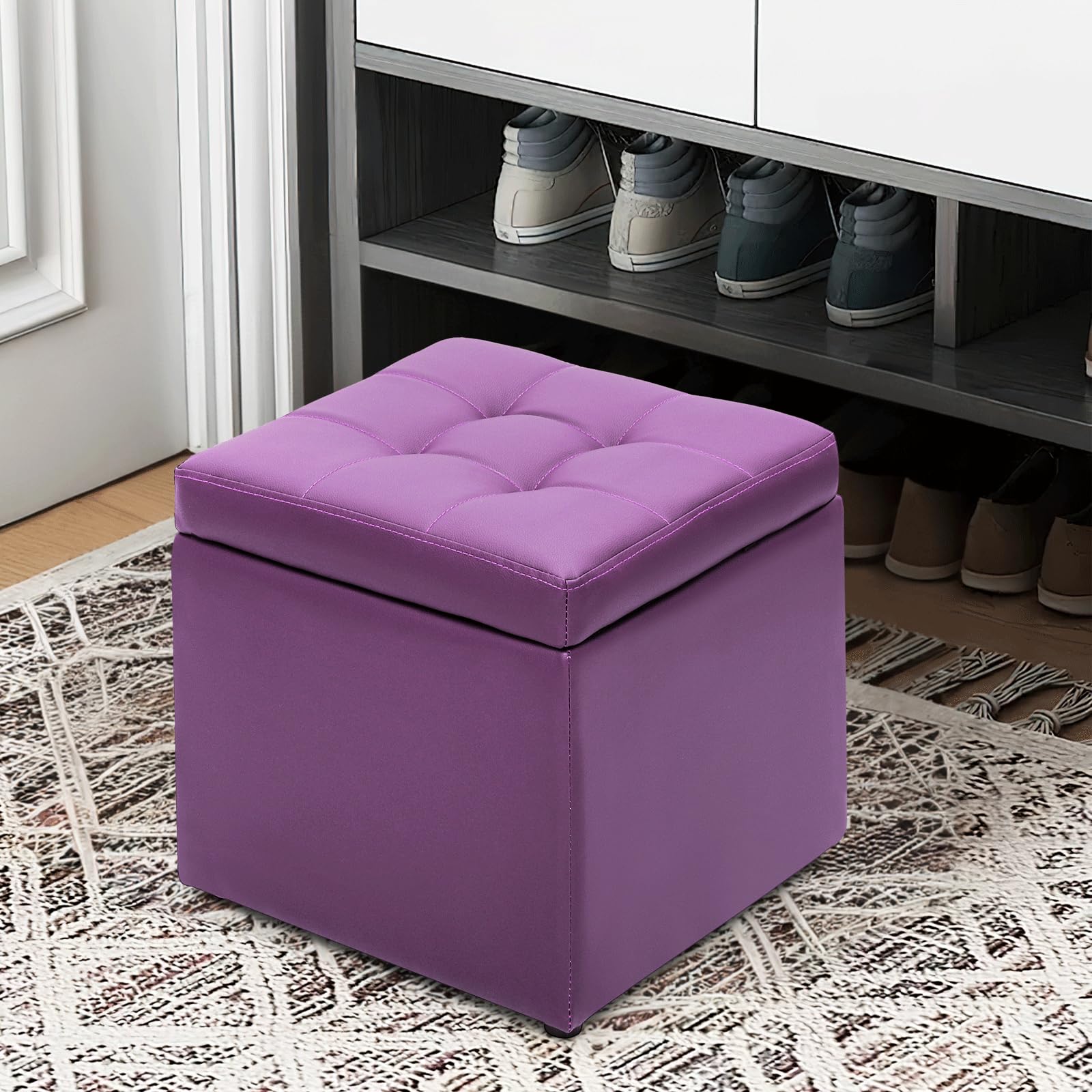 HOMCOM Rectangular Storage Ottoman Bench Button Tufted Faux Leather Upholstered Footstool with Soft Closing Hinged Lid and Armrests for Bedroom Living Room Brown Aosom Very well made.