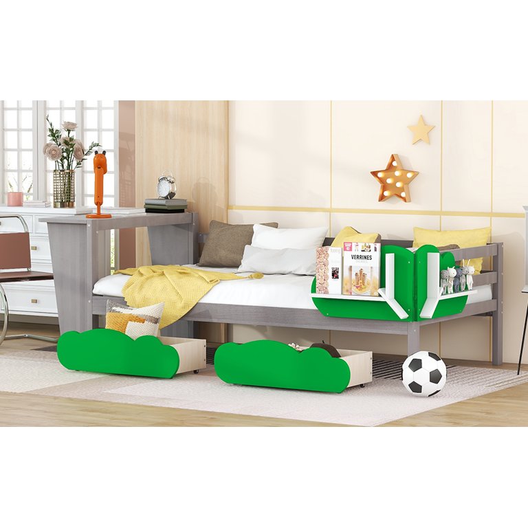 EUROCO Twin Size Daybed with Desk and Green Leaf Shelf and Drawers for Kids Antique Gray Very well made.