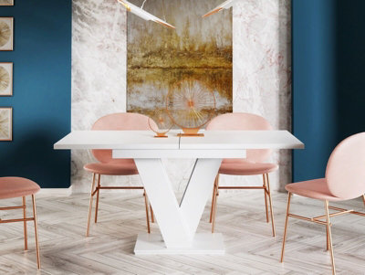 Extendable Dining Kitchen Table White Matt Extending 120 160cm V Leg 6 8 Seater Masy Very well made.