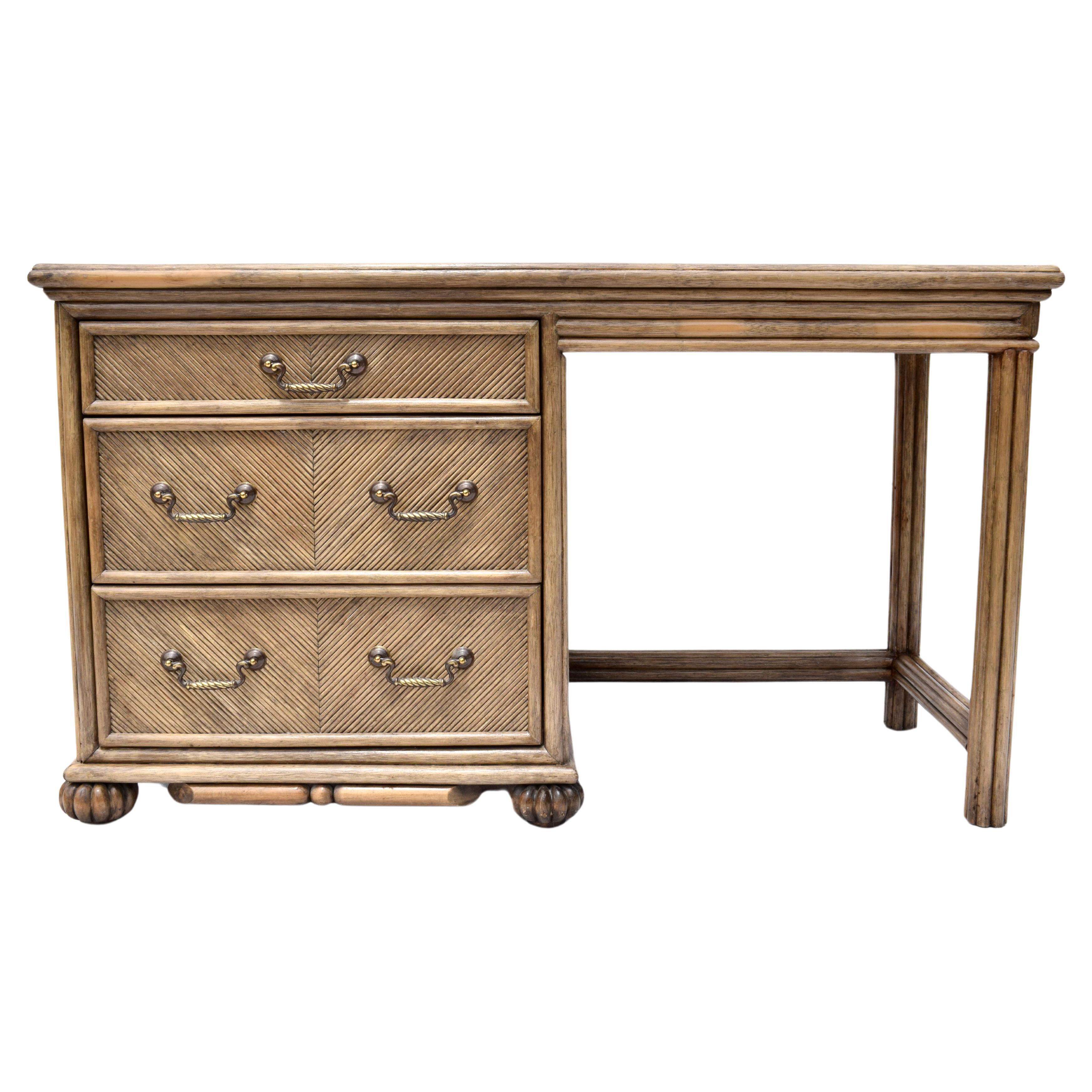 McGuire Rattan and Midcentury Oak Writing Desk with Three Drawer and Saber Legs English Accent Antiques Very well made.