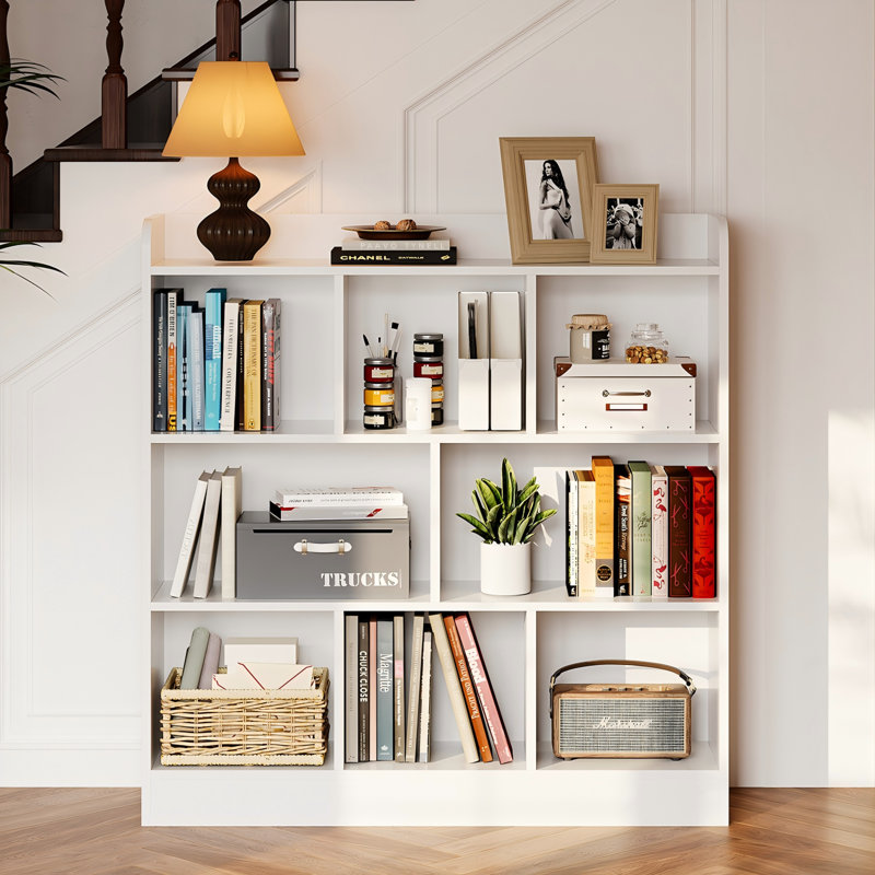 White Cube Bookshelf Wood Bookcase with Base 3 Tier Horizontal Open Shelves Latitude Run Size 3 Shelves 44.41 H x 39.37 W x 9.45 D Very well made.