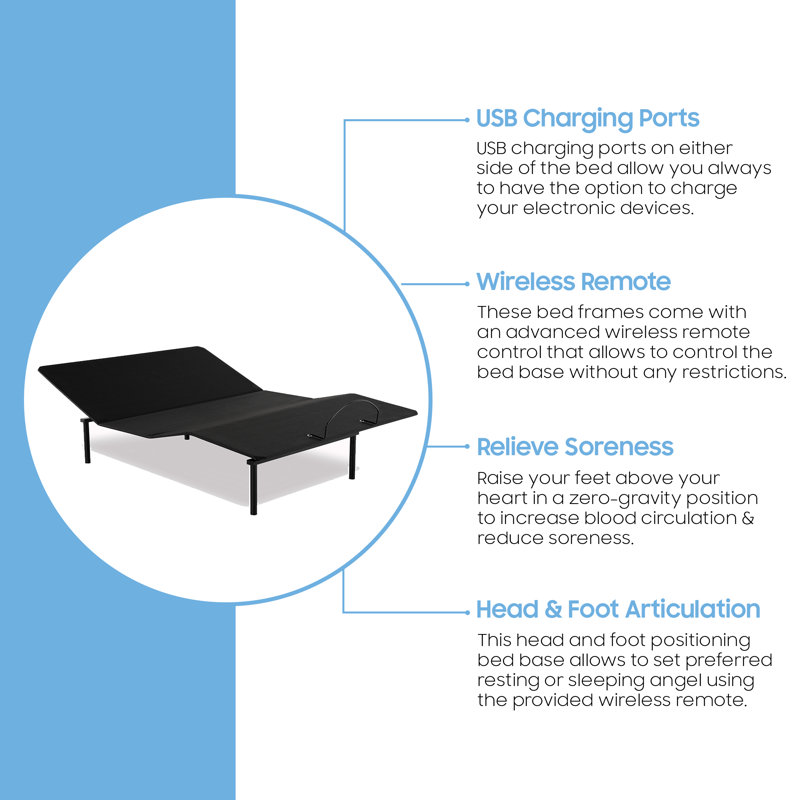 12 Inch Adjustable Bed Base with Head and Foot Incline USB Port Flat Button Screw In Legs Black Full Very well made.