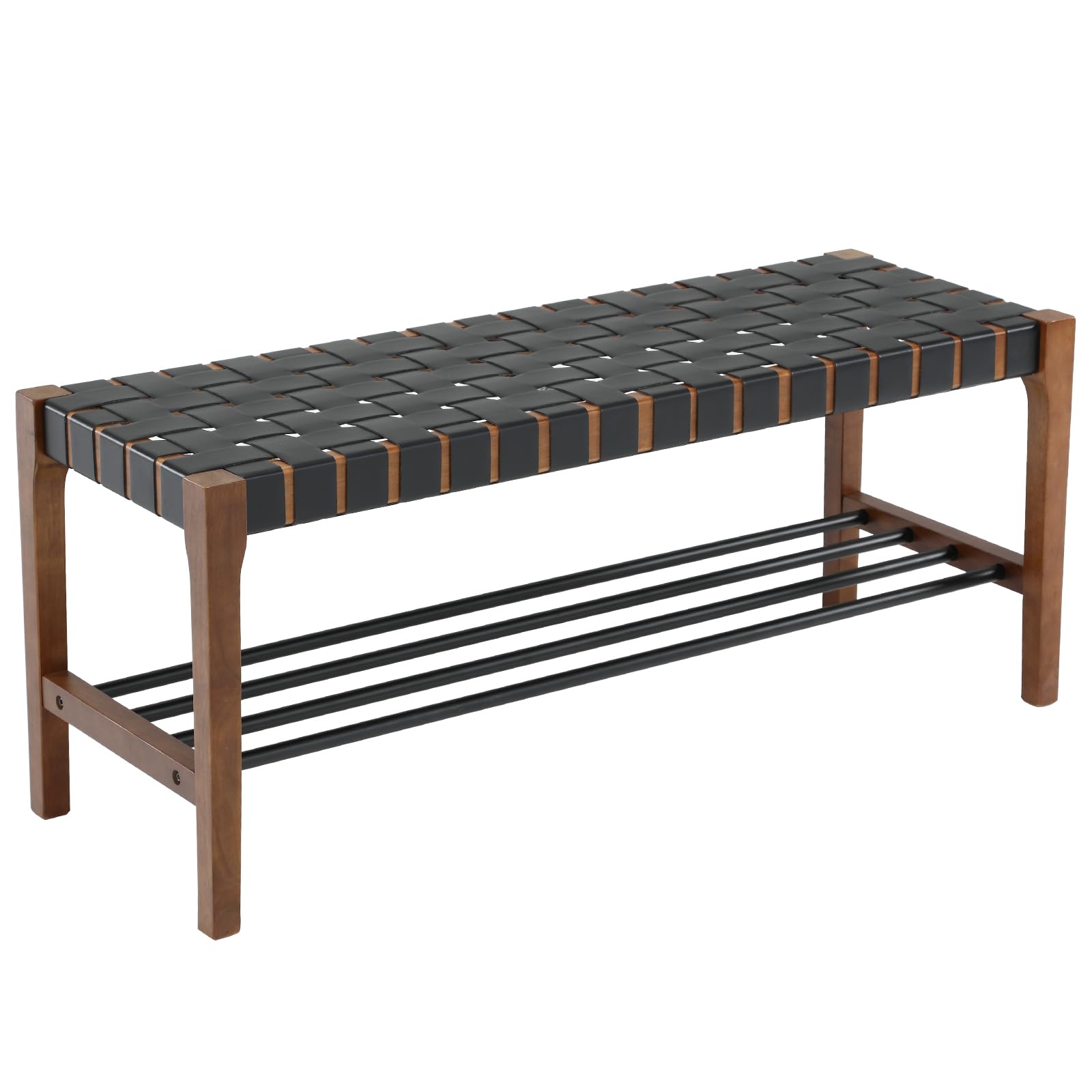 Leather Woven Bench Marlboro Leather Teak Bench 4.4 feet Multipurp Modish Store Very well made.
