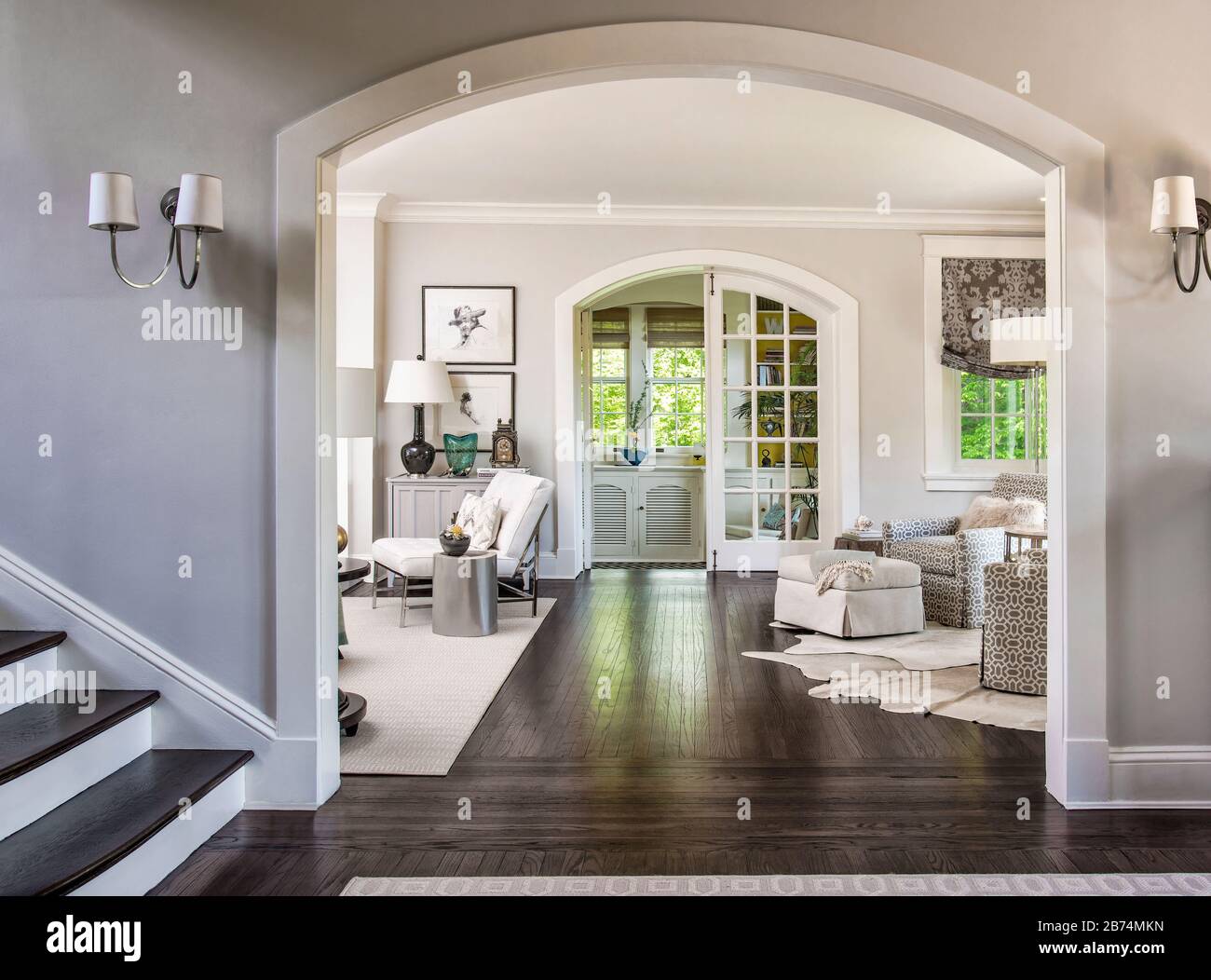 Arched doorway in Foyer with view to living room Stock Photo Alamy Very well made.
