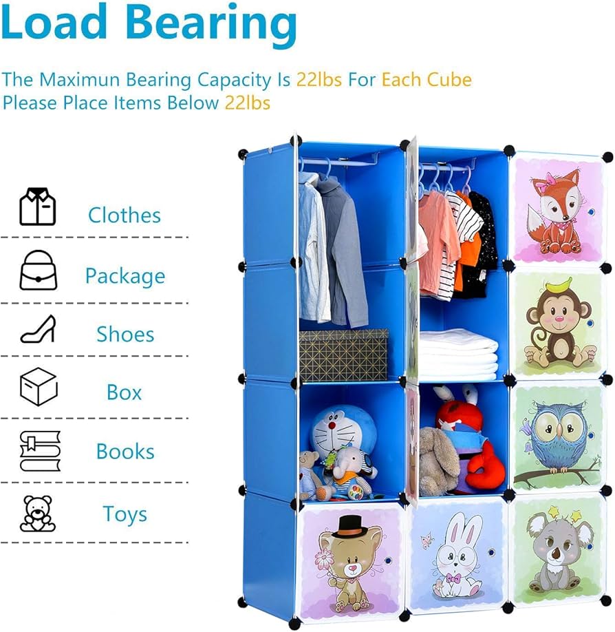 BRIAN DANY Portable Cartoon Clothes Closet Wardrobe DIY Modular Storage Organizer Sturdy and Safe for Children 12 Cubes 2 Hanging Sections Blue Walmart Very well made.