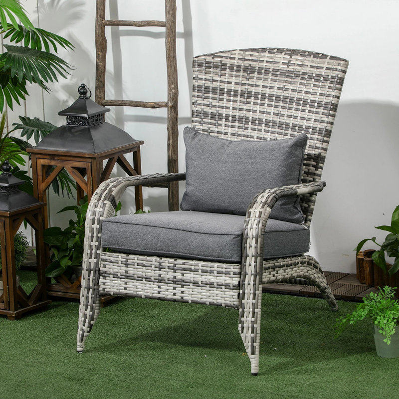 Kadarian Outdoor Rattan Adirondack Deck Chair Armrest Lounge Chair w Cushion Gray Dark Brown Very well made.