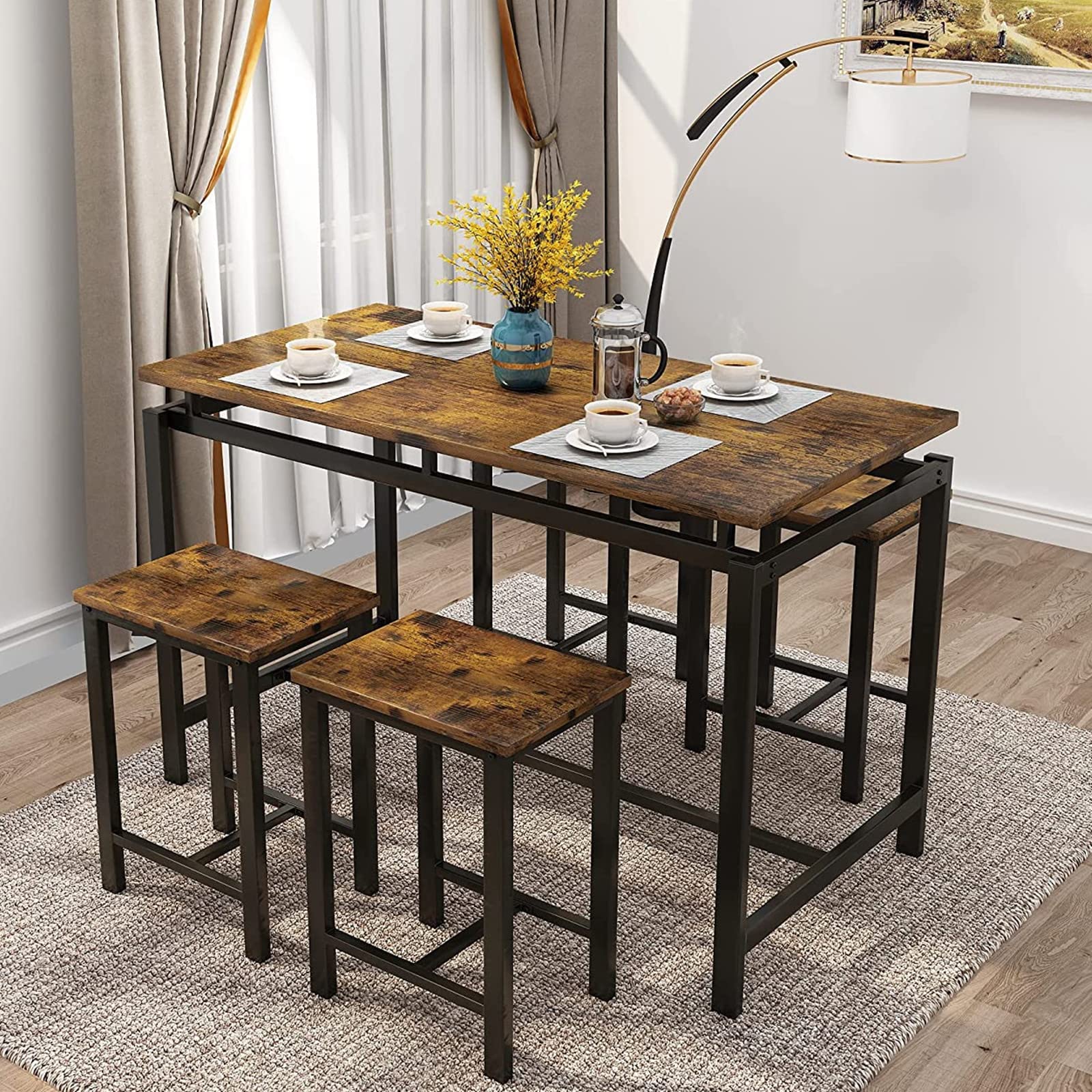 MIERES 5 Piece Dining Table Set for 4 Small Kitchen Bar Table and Chairs for 4 Wooden 47 Dining Room Table Set with 4 Stools Space Saving Ideal for Pub Restaurant Cafe Office Products Amazon Very well made.