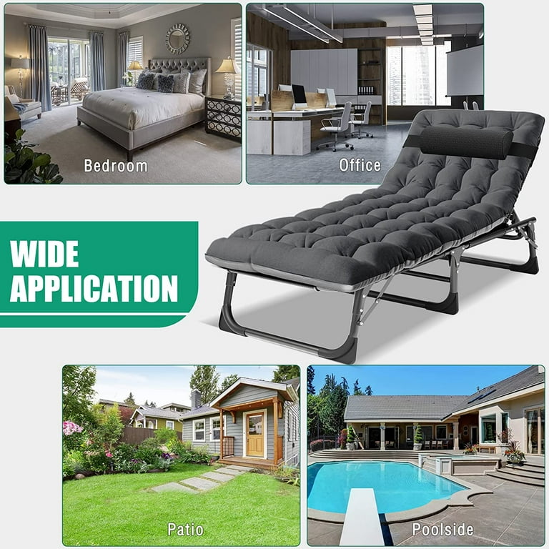 Lanita Folding Lounge Chair 5 Position Adjustable Outdoor Reclining Chair Folding Sleeping Bed Cot Gray Very well made.